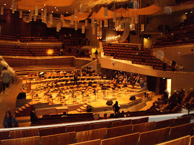 O primeiro auditório da Berliner Philharmoniker foi destruído durante a Segunda Guerra Mundial, em 1944. A partir de 1963 a Orquestra passou a residir no edifício da Philharmonie, construído entre 1960 e 1963, segundo o projecto pentagonal do arquitecto Hans Scharoun e que fica situado entre a Potsdamerplatz e o Tiergarten, na rua que tem hoje o nome de Herbert von Karajan. Entre 1984 e 1987 foi acrescentada à Philharmonie a Kammermusiksaal, desenhada por Edgar Wisniewski com base nos apontamentos de Scharoun. O conjunto faz lembrar do exterior uma tenda de circo mas trata-se de uma das melhores realizações arquitectónicas europeias de salas de música. Em Maio de 2008 verificou-se um incêndio no telhado mas os danos foram limitados e as actividades puderam prosseguir no mês seguinte.